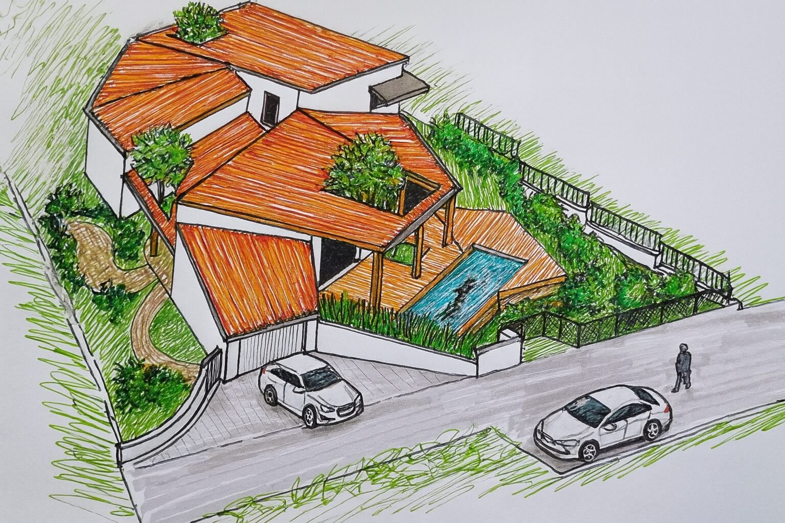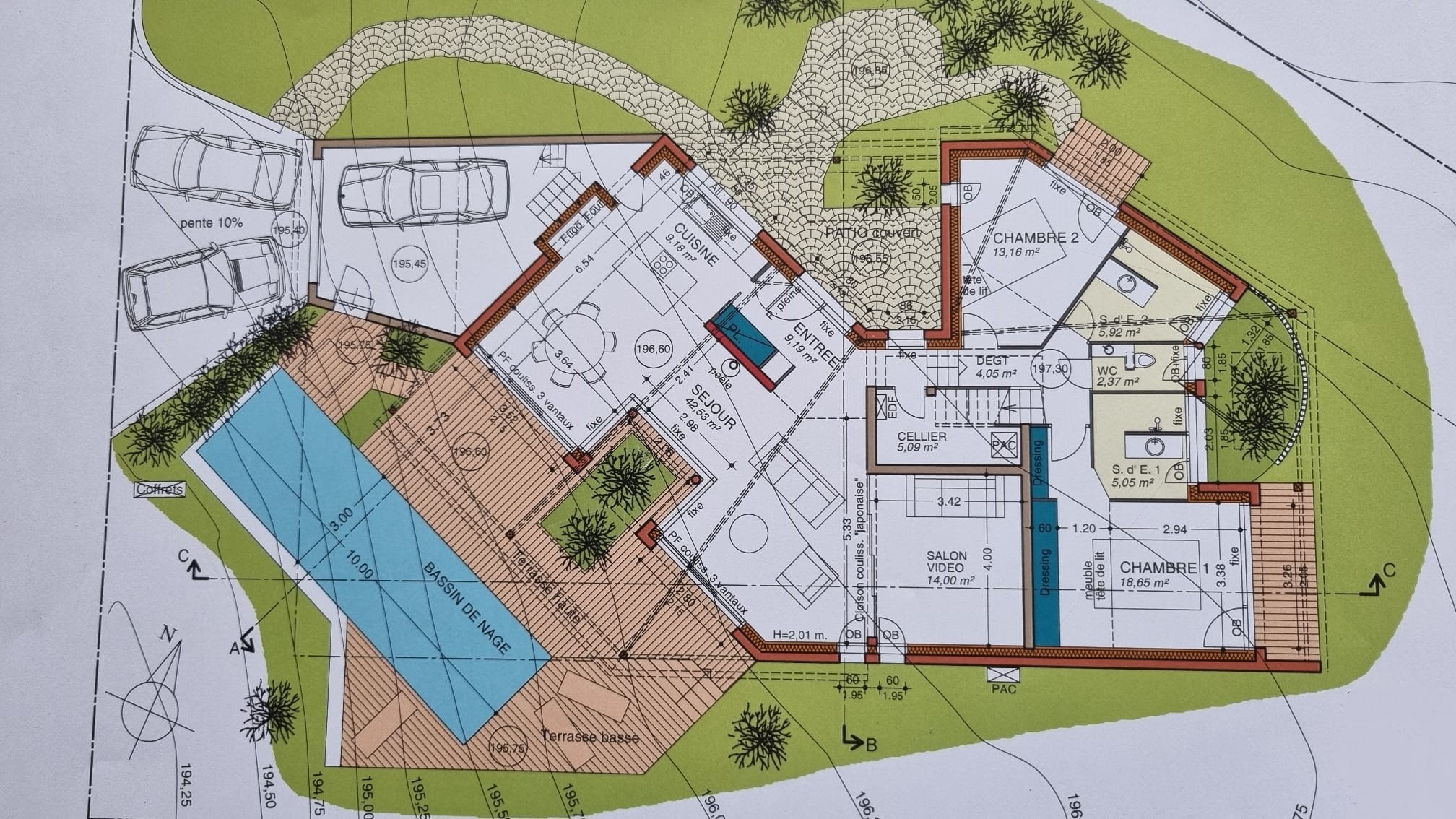 L’enjeu du projet est de construire en s’adaptant à la pente et en limitant le plus possible le terrassement , pour
