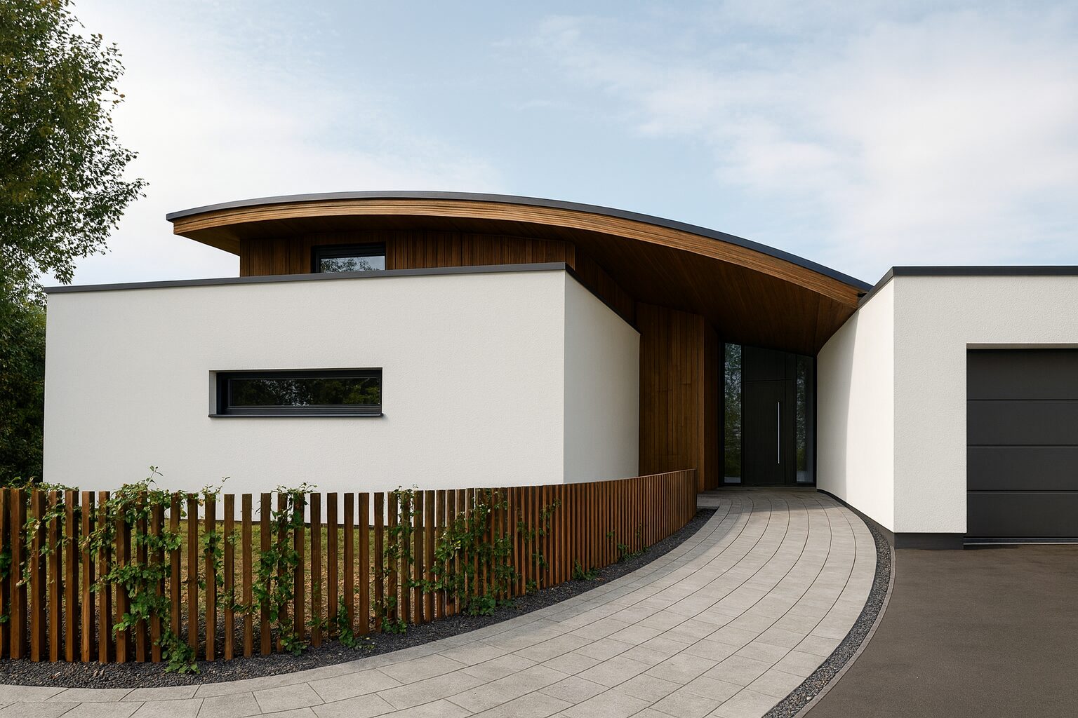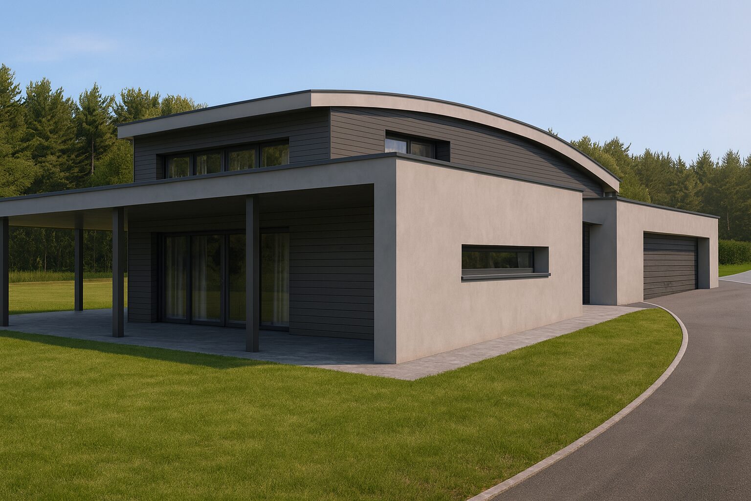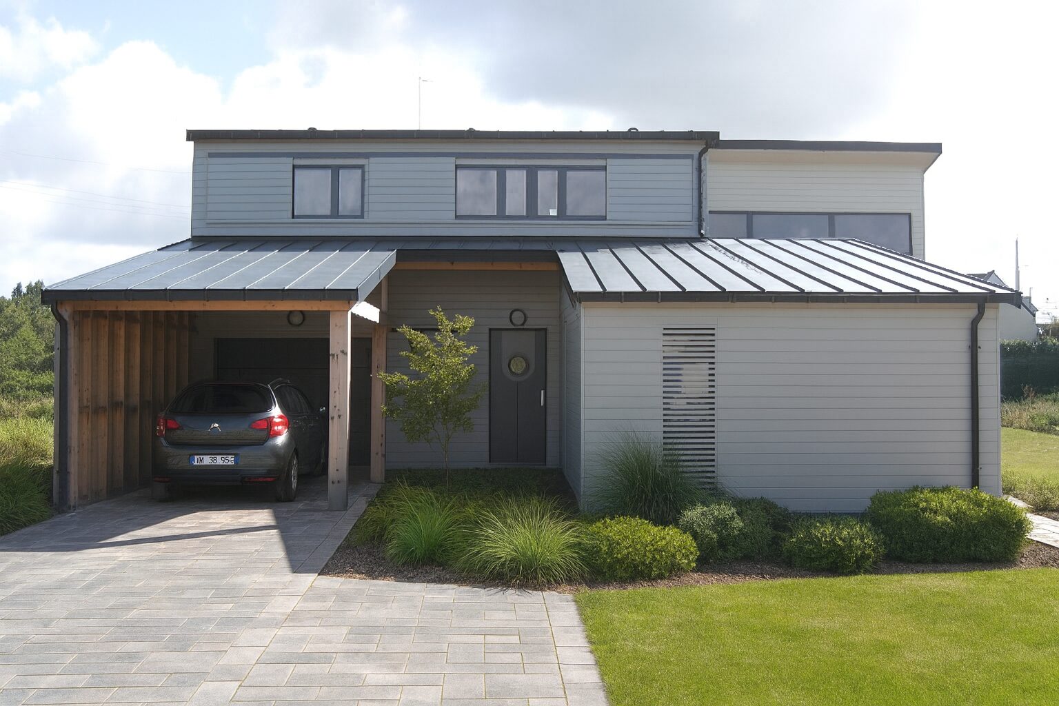 Contexte : Maison de plain-pied, d’allure contemporaine, avec des volumes réduits à leur plus simple expression.