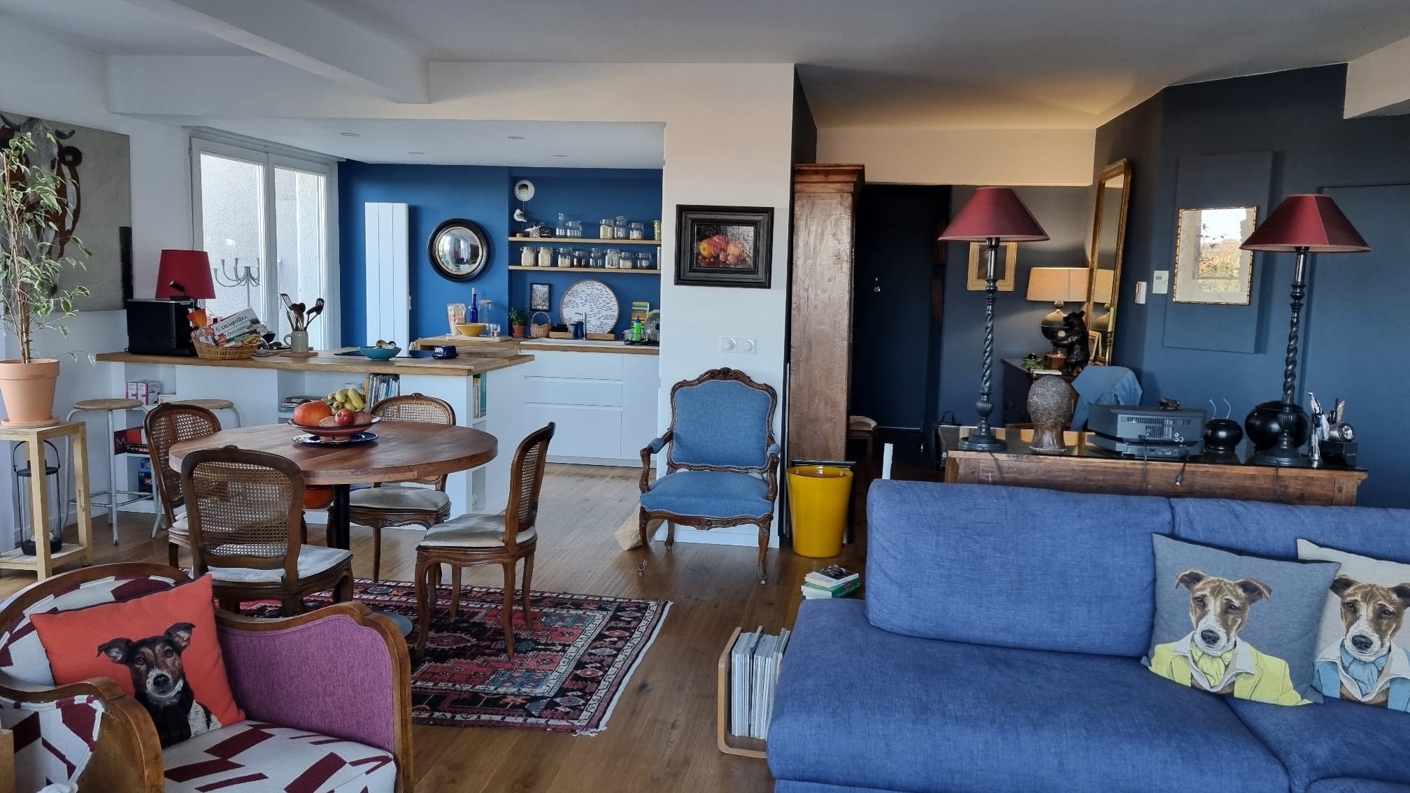 Les travaux ont consisté à redistribuer une partie du logement, à ouvrir la cuisine sur la pièce de vie, à refaire la